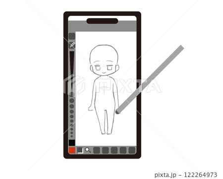 在智慧型手機上繪製漫畫和插圖的圖像插圖