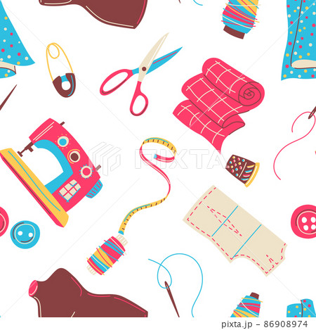 Seamless pattern with needlework sewing items. Handicraft and hand made. Feminine creativity hobby and shopping.