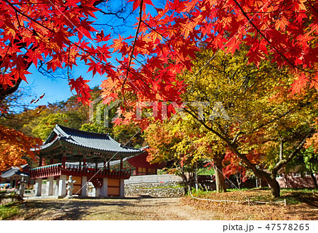 韓國全羅南道長城郡牡羊寺雙溪樓的秋景