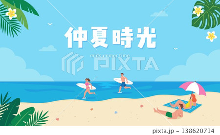 Midsummer Beach Vacation Flat Vector Illustration