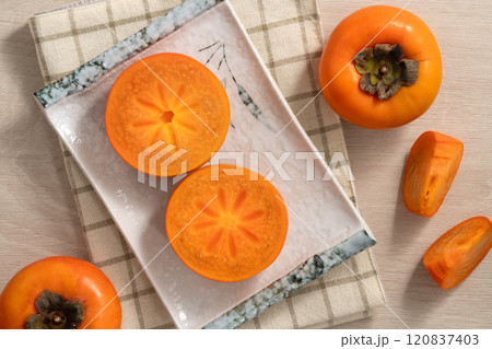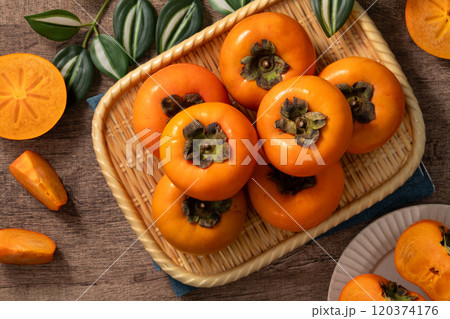 柿子 柿 甜 水果 新鮮 成熟 頂視圖 ripe sweet persimmon あまかき 甜柿