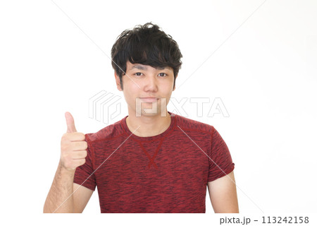 舉起拇指的中年男子全身
