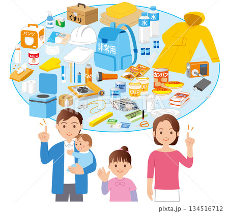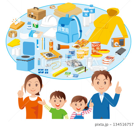 9月1日「防災日」插畫|緊急食品、防災用品、衛生用品等