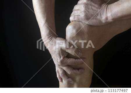 高級膝關節疼痛圖像 老人抱著膝蓋