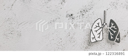Decorative white lungs paper on gray for World TB Day. Raising awareness of tuberculosis,