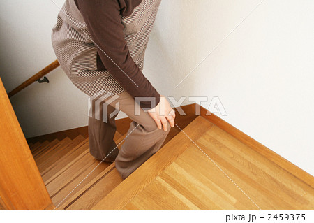 一個男人在樓梯上呼吸急促和膝蓋疼痛的形象