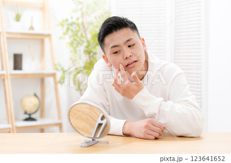 無性別化妝的年輕人、男士化妝品、皮膚護理、美容