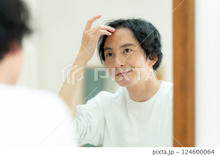 一位年輕日本男子的肖像,配有配件美容護膚男士化妝品