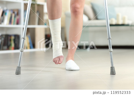 Broken legs. Crutches adult person medical orthopedics rehabilitation vector isometric human