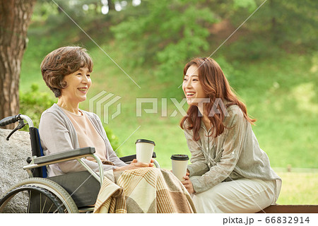 野餐的母親和女兒
