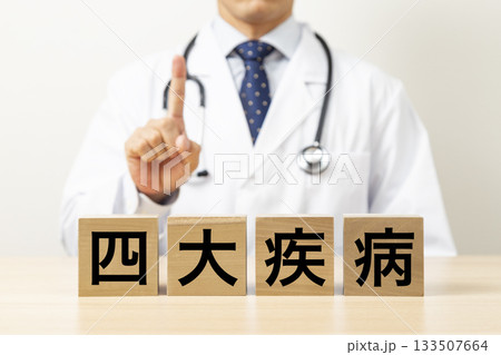 一塊寫著「四大疾病」的方塊和一個醫生的圖案