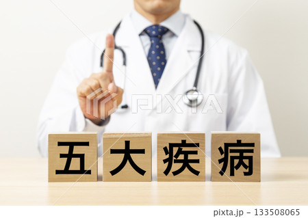 標示「五大疾病」的方塊和醫生