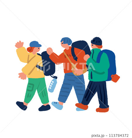男性人物圖示插圖,帶有戶外、健行、登山、露營微笑、多種姿勢的圖像