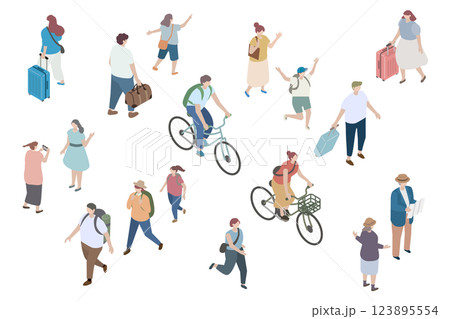 簡單扁平的手繪插畫,描繪了人們想像入境旅行和旅行的情景