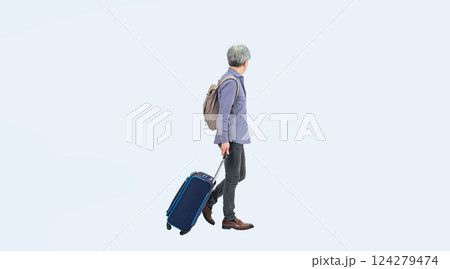 Unrecognizable woman in stylish casual outfit traveller standing over grey background, carrying yellow luggage and backpack, holding passport and flight tickets, cropped, copy space