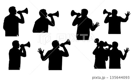 Black Solid Singer Loud Hailer Protest Silhouettes Set of Six on White Background