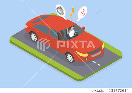 3D Isometric Flat Illustration of Angry Driver, Furious Motorist