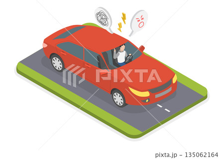 3D Isometric Flat Vector Illustration of Angry Driver, Furious Motorist