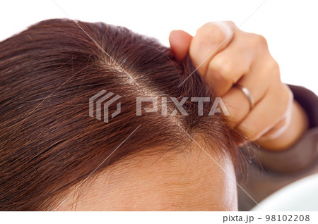一個女人照顧頭髮、壓力、受損頭髮的插圖