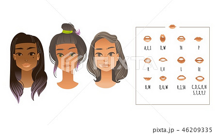 Female mouth animation. Womans talking mouths lips for cartoon character animation and english