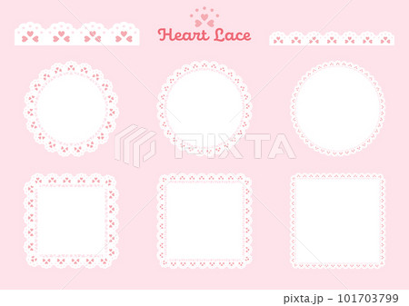 心形圖案花邊框架和線條設置 2 白色背景上的粉紅色圖案