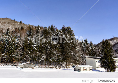 東北地區的自然風景,雪山腳下的小屋
