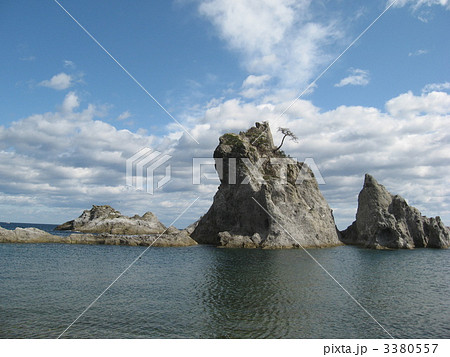 位於奧松島佐賀溪的“曼波島”,從佐賀溪散步道俯瞰。宮城縣東松島市宮戶市。