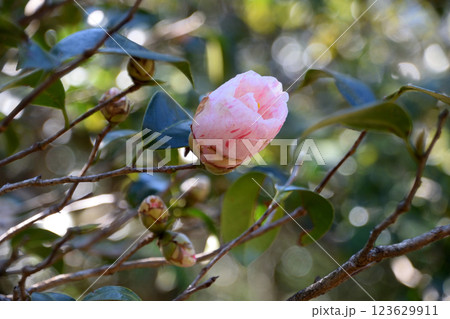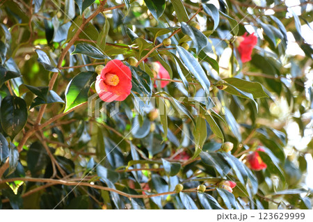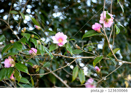 開花從冬天到早春的山茶花花。取名為“茶花女王”的綽號。