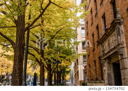 橫濱白楊樹成蔭的街道,秋葉飄落。