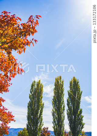 北海道/北海道大學/札幌市,一排白楊樹,您可以輕鬆欣賞北海道典型的景色