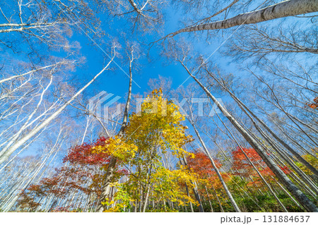 岩手縣平庭高原美麗的白樺林和秋葉,秋天