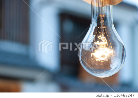 在昏暗的房間裡,復古燈泡發出微弱的光芒