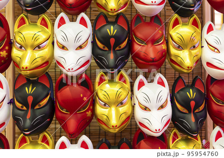 稻荷神社稻荷桑的狐狸、狐狸臉、狐狸火、繩子和紙皮套