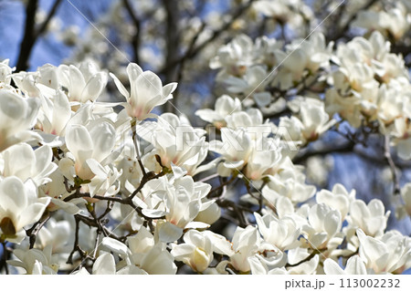 高崎市慈源寺白玉蘭樹的枝尖盛開著白色的花朵