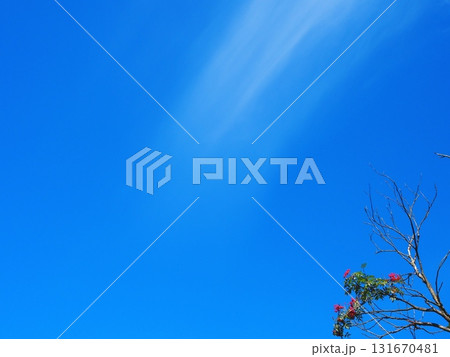 北斗市白州町蔚藍的天空中漂浮著卷雲