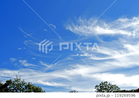 自然天氣 卷雲是形成於高空的白色纖維狀雲。這些雲呈南北走向,綿延很長。