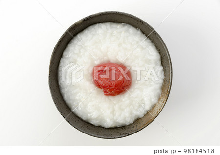 稀飯放在陶碗裡。雞蛋粥。海藻。切碎的蔥。