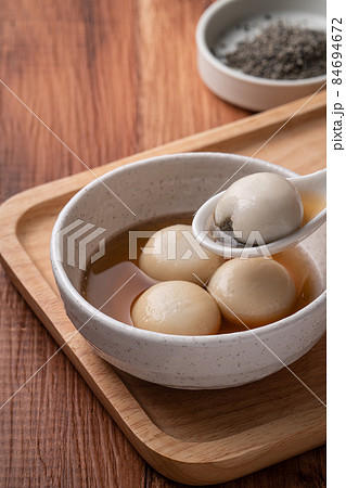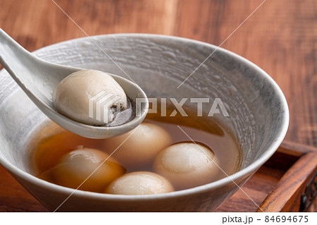 Tangyuan (Chinese sweet dumpling), Glutinous rice ball in syrup, Dessert celebrated in mid autumn lantern festival or new year