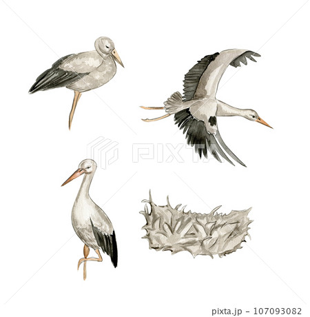Watercolor hand drawn stork bird . Watercolor illustration of wild animal. Perfect for wedding invitation, greetings card, posters.