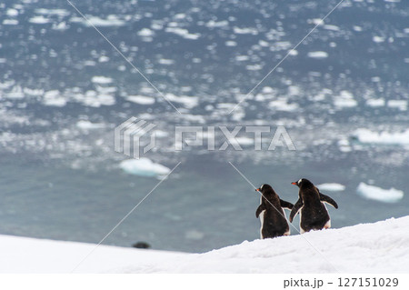 A penguin stands on a sheet of ice next to a blank sign with Generative AI