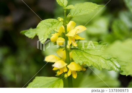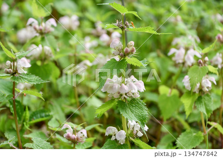 沐浴在春日陽光下的白蕁麻(花舞者草)