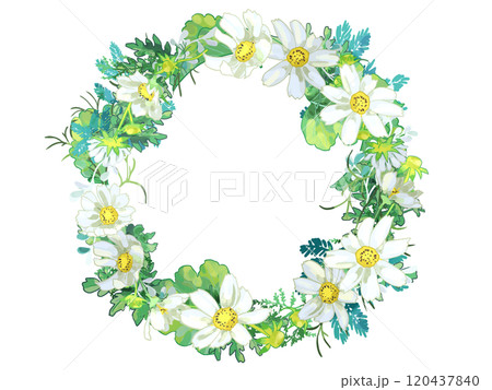 明亮的邊框,有白色的雛菊和藍色的花朵