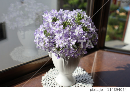 馬鞭草花插在花瓶裡