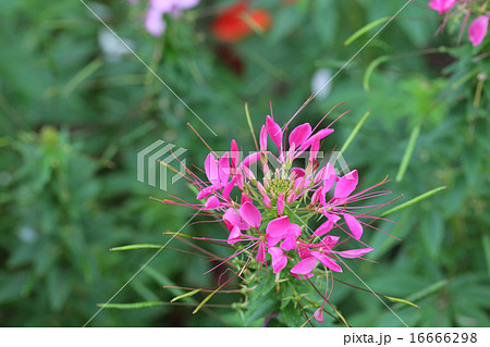 Spider Flower or Cleome with pink color petal blooming in the garden