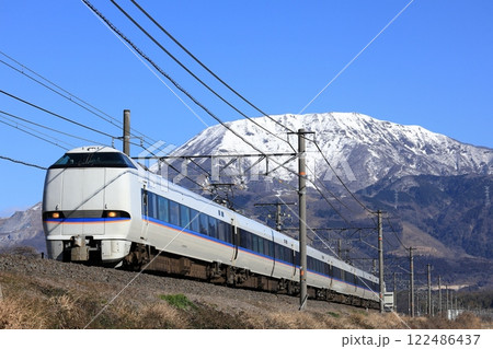 以伊吹山為背景,駛向名古屋的特急“白鷺號”