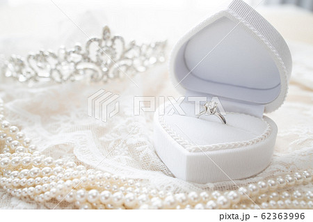 手戴蕾絲手套,手裡拿著兩排鑽戒