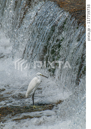 京都市高野川水壩下覓食的小白鷺