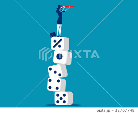 Vector businesswoman trying to balance with interest symbol like acrobat