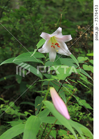 在初夏靜靜地在里山盛開的百合百合的特寫
