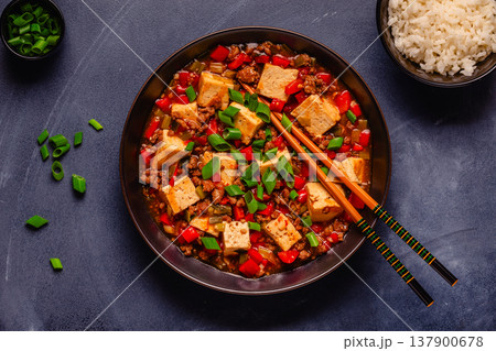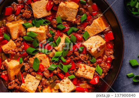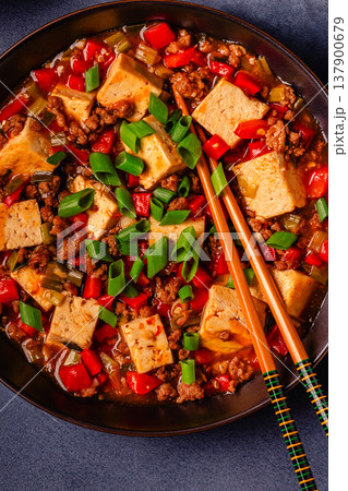 Mapo tofu, tofu in spicy mincemeat sauce.